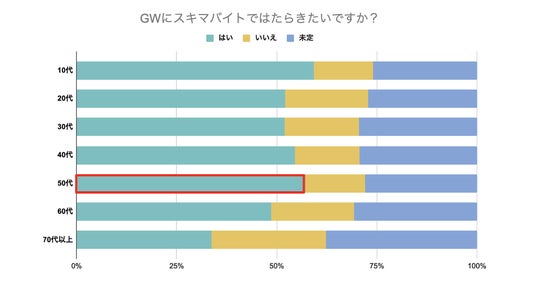 「GW中にスキマバイトをしたいですか?」という質問では、半数近くにあたる42.6%の方がはたらきたいと回答した。