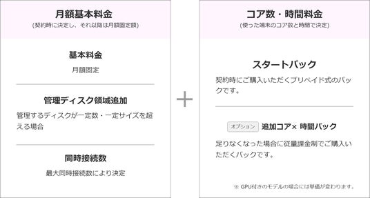 「月額基本料金」 + 「コア数・時間料金」 のみです。