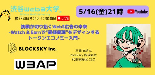 【渋谷Web3大学】Web3 広告「W3AP」に試験動画広告を配信──トークンエコノミー実証を開始、5/16 オンライン勉強会で「Watch & Earn」新展開を公開★予定★
