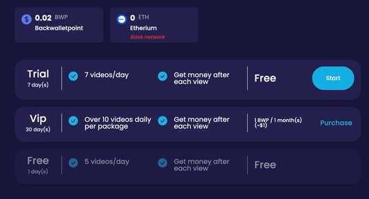 ViP(有料1BWP/1か月):1か月アクセス可能。1日10個までビデオ視聴可能。