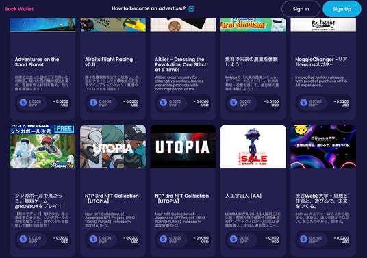 渋谷Web3大学(運営:渋谷Web3大学株式会社、本社:東京都渋谷区、代表取締役:北村 元)は、blocksky 株式会社が開発する Web3 広告プラットフォーム「W3AP」上のアプリ「BackWallet」を用い、試験動画広告の配信を開始しました。