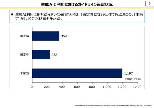 参照:総務省 情報流通行政局地域通信振興課 自治行政局行政経営支援室「自治体における生成AI導入状況」(令和6年7月5日版)