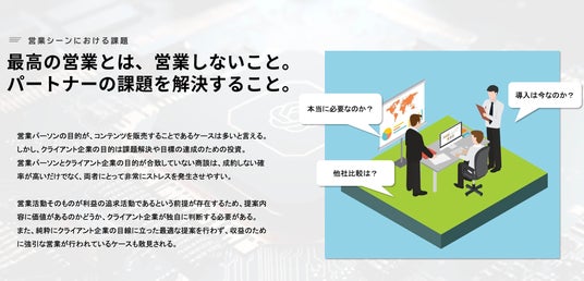 実際にコンテンツやソリューションなどの営業を受ける際に、これらを導入する企業の利益の視点が軽視されると、導入企業は本当に自社に必要なコンテンツなのかどうかを見極めにくくなります。営業パーソンからの提案が自社の課題に合致しているのか不明瞭なまま導入を決定し、後になって効果が出ずに損失を被るケースも少なくありません。こうした負の連鎖を断ち切るには、導入企業のビジネスを深く理解し、導入企業の収益を重視した、適切な商材提案を行う仕組みが必要だと考えています。