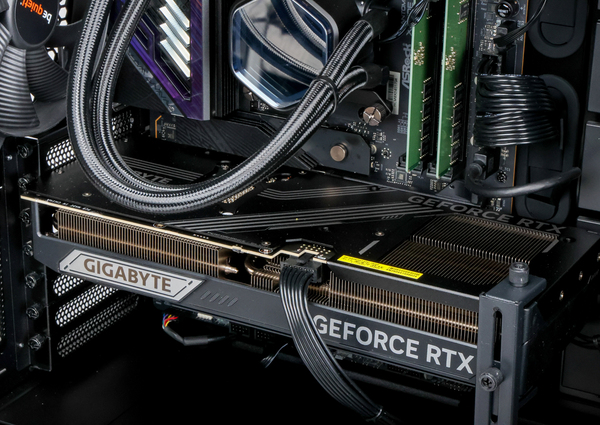 Ryzen 9 9950X3Dに組み合わされるGPUは「GeForce RTX 5080」(以下、RTX 5080)で、試用機ではビデオカードにGIGABYTEの「GeForce RTX 5080 WINDFORCE OC SFF 16G」が装着されていた。