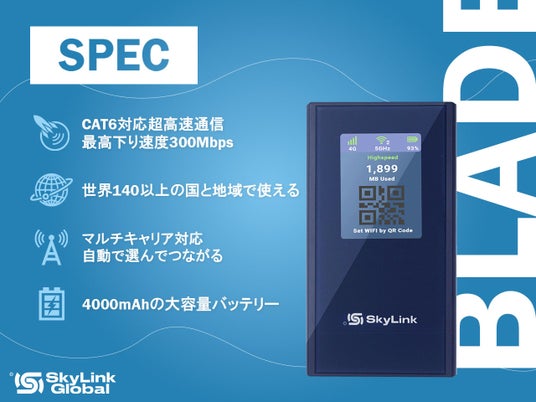 契約・月額・返却等面倒な手続き全て不要、革新的ポケットWi-Fi「BLADE(ブレード)4G+」。