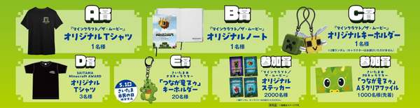 また、5カ所のキーワードをすべて集め、『マインクラフト/ザ・ムービー』の映画半券と一緒にMOVIXさいたまで提示すると、非売品のノベルティがもらえる(A~E賞は抽選)。ノベルティには、映画オリジナルのTシャツやノート、キーホルダー、ステッカーといったアイテムがラインアップされている。また、5月1日の「さいたま市民の日」には、MOVIXさいたまに、さいたま市PRキャラクター「つなが竜ヌゥ」が登場予定。同日にはノベルティに「つなが竜ヌゥ」キーホルダーが限定アイテムとして登場予定とのこと。