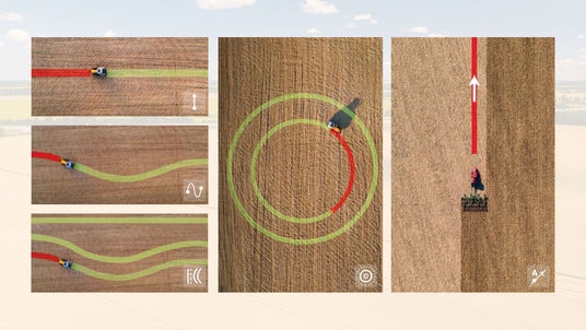 どの様な圃場でも活用いただけるように直線、曲線、A+ライン、円曲線、ライン併用といった幅広いベースラインをご用意致しました。作成したライン情報を共有する事が出来るので、ガイダンスシステムを導入した2台のトラクターを同じ圃場内で同時に作業する事も出来ます。