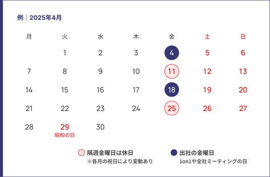 試行を踏まえ、「隔週休3日制・1日あたり8.5時間・出社金曜日は1on1や部門横断/全社のミーティング」への改訂
