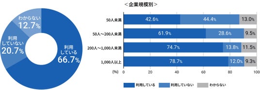 東海地方でも6割以上の企業がSaaS(Software as a Service)を導入していることがわかりました。企業の規模別では、SaaSの導入状況は概ね従業員数に比例する結果となりました。