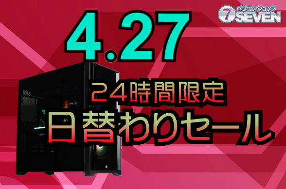 セブンアールジャパンが運営するパソコンショップSEVENは、4月27日限定で「2025/4/27 24時間限定セール」を開催する。この期間中、最新のゲーミングPCやデスクトップPCが最大50,000円オフで購入できる。