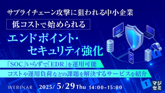 マジセミ株式会社は「サプライチェーン攻撃に狙われる中小企業、低コストで始められるエンドポイント・セキュリティ強化」というテーマのウェビナーを開催します。
