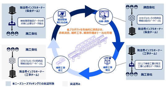 今回の採択は、インフラメンテナンスにおけるDXの推進を目指し、従来の補修工事を主目的とした「Hatsuly」の枠を超え、インフラメンテナンスの全工程を対象とした新たなコンセプト「Hatsuly Inspection」として取り組むものです。「調査・点検」「補修工事発注」「維持管理」そして次なる「点検」へと続く一連のサイクル全体を3Dベースに統合・効率化することで、従来の写真や紙による管理から脱却し、省力化・省人化を伴った真のインフラマネジメントDXを実現するための実証となります。