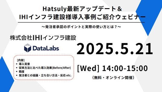 5月21日(水)14時からHatsulyユーザー様であるIHIインフラ建設様と共同ウェビナーを開催予定です。