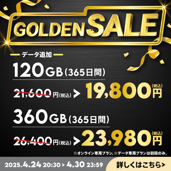・360GB(365日間): 2万3980円(2420円引き)