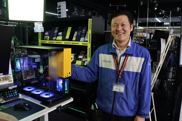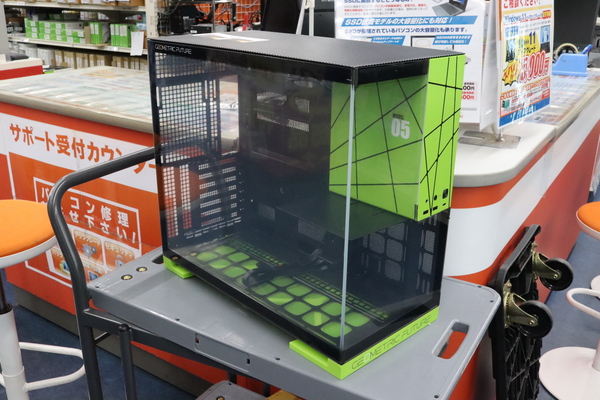 大阪・日本橋のPCパーツショップ「パソコン工房 大阪日本橋店」を取材。店舗スタッフ・小山翔さんのオススメは、鮮やかなカラーリングが目を惹くピラーレスPCケース、Geometric Futureの「Model 5 BLACK」です。