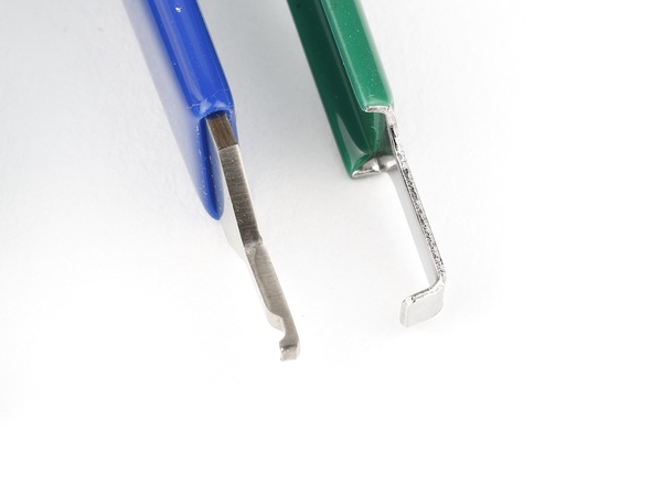 まず違うのが先端の形状。IC引き抜きは板の端が曲げられているような形状ですが、SS-10は先が細くなっており、コネクターをつかむ凹みが作られているのが特徴です。
