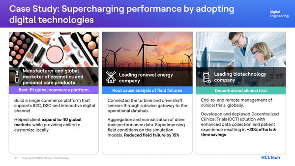 そのほか、モバイルデバイス、EVバッテリー、印刷機、医薬品、化粧品など幅広い製造業(メーカー)、さらには金融、テレコムなど非製造業のエンタープライズ顧客に対して、製品エンジニアリングから製造効率化、デジタル販売チャネルの構築など、エンドトゥエンドでサービスを提供している。後述するオリンパスもその一社だが、多くの有名企業の製品開発やサービス開発、デジタル変革の裏側を、HCLTechが支えている実態がある。