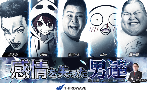 サードウェーブは、「E5 Talk Live Series vol.2 感情を失った男達」を6月15日に東京・科学技術館 サイエンスホールで開催すると発表した。今回のイベントは、人気ストリーマーたちが出演し、笑いなどの感情を表に出さずに競うバラエティトークイベントだ。チケットは5月2日18時より販売開始される予定である。
