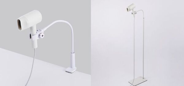 エレコムが今回発表したヘアドライヤースタンドは、「クランプ式」と「床置きタイプ」の2種類があり、それぞれがユニークな特徴を持っている。いずれのタイプも、ヘアドライヤーを固定し、アーム部分を自在に曲げることで、ドライヤーの高度や角度を細かく調整することができる。さらに、ホルダー部分は360度回転が可能で、ムラなく均一に髪に風を当てることができるとしている。