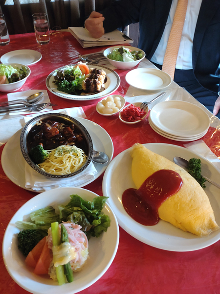 「どれも美味しいんだよ~」と六川さん。濃厚デミグラスソースがたまらないビーフシチュー、卵が4個も使われている特大オムライス、これぞ洋食屋さん!のカニクリームコロッケ、ボリュームたっぷりのサラダをオーダー