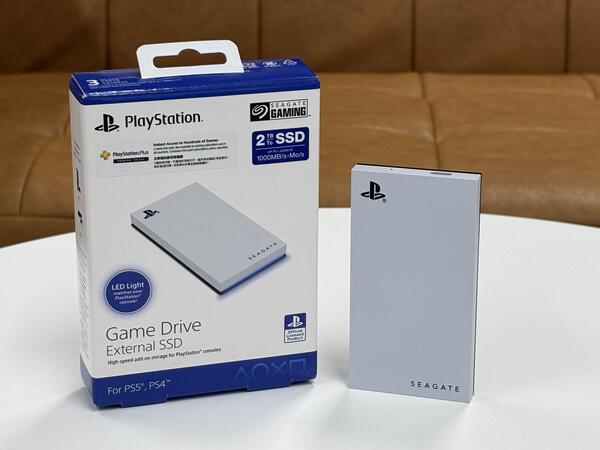 Seagateが2024年12月に発売したGame Drive PS5 SSDは、PlayStation公式ライセンスを取得している外付けSSD。USBでPS5やPS4などに接続し、拡張ストレージに設定することで、ゲームやアプリのデータを保存できる。