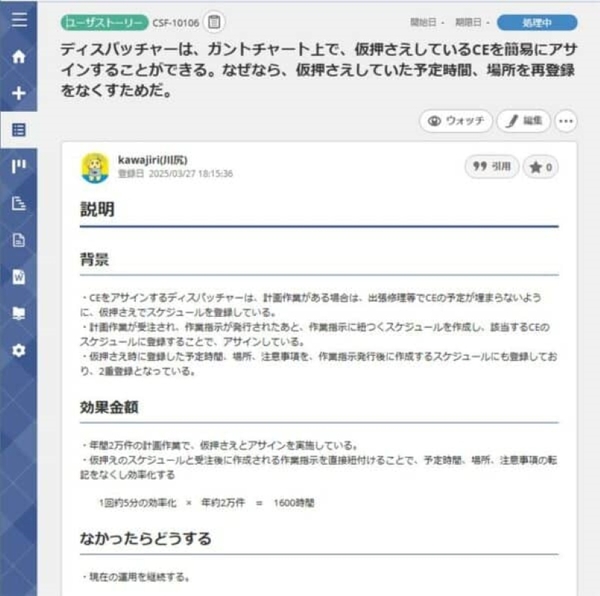 NECフィールディングは、「属人的だった管理をBacklog上に移行することで、業務改善が進み、効率も格段に上がっています」とコメントしている。