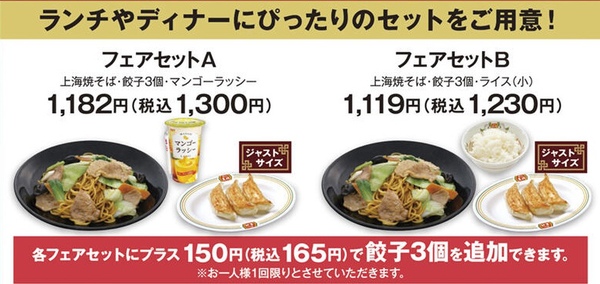 ※各フェアセットにプラス165円で餃子3個を追加可能。
