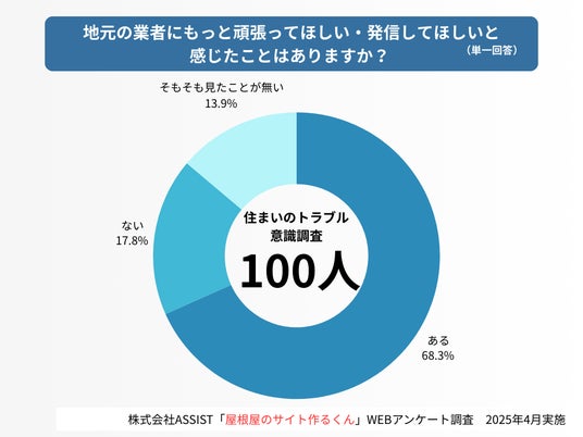 当社が実施したアンケートでは、「地元の施工業者にもっと情報発信してほしいと感じたことがあるか」という問いに対し、実に68%もの人が「ある」と回答しました。これは、約7割の消費者が“情報不足により選びづらさや不安”を感じた経験があることを示しています。