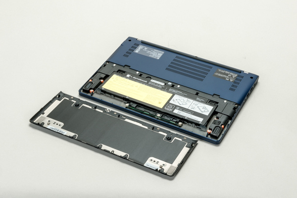 ノートPCの寿命を左右するバッテリー。XP9はユーザー自身で簡単にバッテリー交換ができる「セルフ交換バッテリー」機構を採用しています。バッテリーが劣化しても修理や買い替えの必要がなく、長期間にわたって快適なパフォーマンスを維持可能。