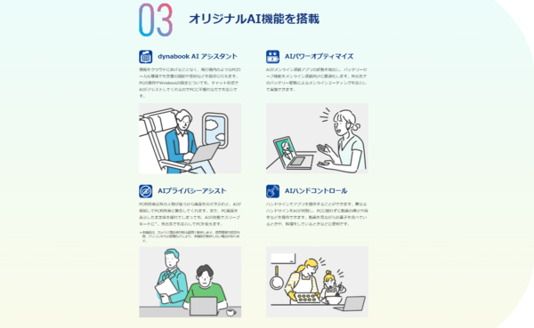 dynabook独自のAI機能はつかえますが、AIの性能や対応範囲は今後のOSアップデートやアプリの進化により拡充される見込みです。