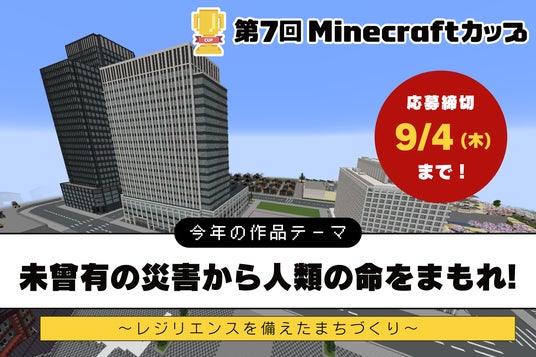 第7回Minecraftカップがスタート!「災害に立ち向かう力」をテーマに、高校生以下の子ども達がデジタルものづくりに挑戦します。締め切りは、夏休み明けの9月4日まで。