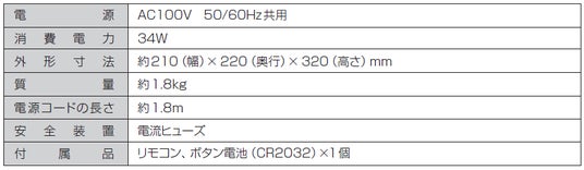 ・12段階風量調節。左右自動首振り約60/90/120°、上下手動首振り約0~90°/0~150°。