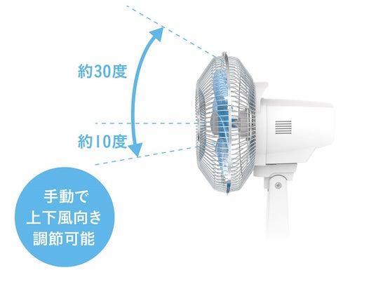 上下手動首振り上に約30°、下に約10°