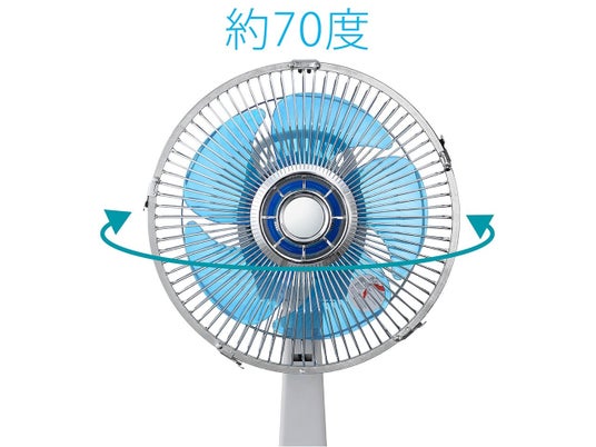 左右自動首振り約70°、上下手動首振り上に約30°、下に約10°の範囲で調節可能。