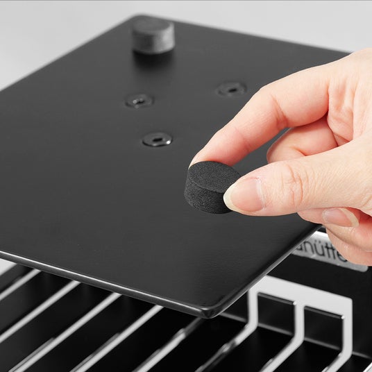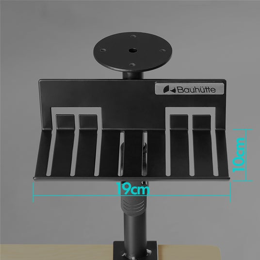 4mm厚の鍛造スチール天板を採用。耐荷重は15kgまで対応し、重量のある中型スピーカーもしっかり支えます。大切な機材を安心して設置できるよう、頑丈な作りにこだわりました。