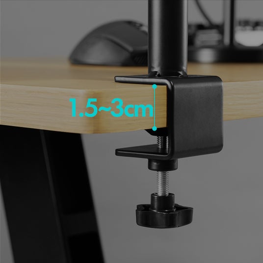 省スペースに設置できるクランプ固定式を採用。浮かせて設置することで、デスクに直置きした状態に比べ、広々とした作業スペースを確保できます。