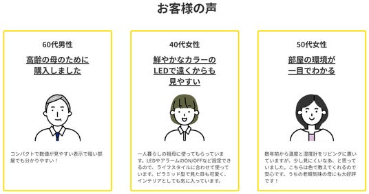 これまでご購入いただいたお客様からは、室内の熱中症対策にLEDの光で見やすいことなどを評価いただきました。
