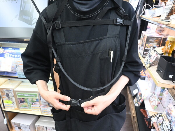 強い夏の日差しを遮りつつハンズフリーになれる、ウェアラブルタイプの折りたたみ式日傘。ハーネスのように身につける仕様で、手で支える必要なく炎天下の作業でも日傘の代わりをこなしてくれる。