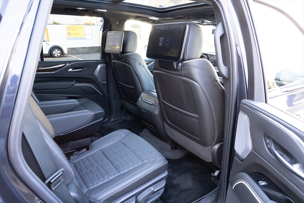 SUVの3列目シートは、大抵オマケみたいな扱いを受ける。だがエスカレードは違う。キチンと大人が座れるのだ。アメニティとしてはUSB Type-Cの充電端子を両サイドに配置する。驚いたのは、各席に近接したスピーカーを用いて、座席間の会話をサポートする機能も備えていること。車内がうるさいからスピーカーとマイクを使わないと会話できない、というわけではない。それくらい車内が広いクルマなのだ。
