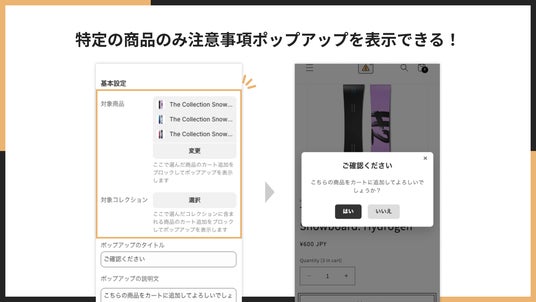 ■ 特定の商品のみ注意事項ポップアップを表示できる!
