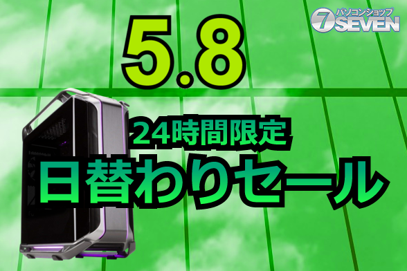 セブンアールジャパンは、5月8日に「2025/5/8 24時間限定セール」を開催する。今回のセールでは、一部の最新ゲーミングPCおよびデスクトップPCが最大90,000円オフと大幅に値引きされる。