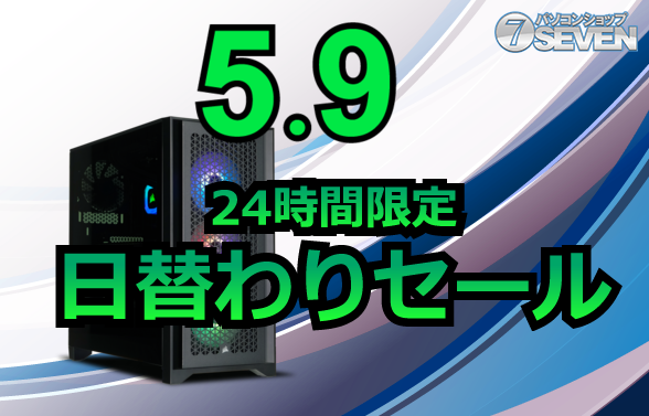 セブンアールジャパンは、5月9日にパソコンショップSEVENにて『2025/5/9 24時間限定セール』を実施する。セールでは最新のゲーミングPCやデスクトップPCが最大74,000円オフで購入可能となる。