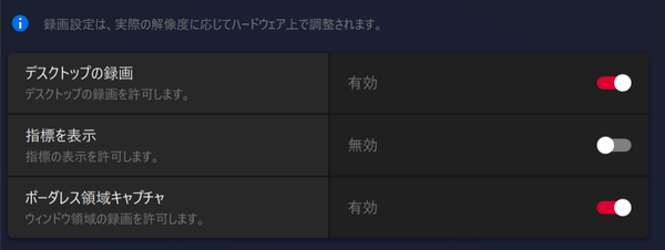 まず録画だが、基本機能は「録画&ストリーム」タブ→「録画」タブの中にほぼ詰まっている。全画面を録画する設定がデフォルトだが、ウインドウモードで起動するゲームの場合は「リージョン」かつ「デスクトップの録画」をオンにしておこう。