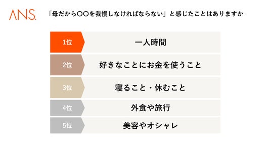母になると、何かを諦めたり我慢したりする機会が増え、「母だから我慢しなければ」という意識が自然と根付いている人も多いと推察されます。