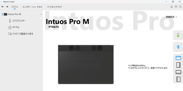 Intuos Proにはカスタマイズ可能なExpressKeyやメカニカルダイヤルが配置されていますが、操作ボタンは専用ソフト「Wacom Center」で細かくカスタマイズ可能です。