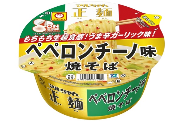 東洋水産は「マルちゃん正麺 カップ ペペロンチーノ味焼そば」(278円)を5月19日より、全国にて発売する。