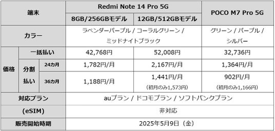 株式会社オプテージ(大阪市中央区)は、携帯電話サービス「mineo(マイネオ)」において、「Redmi Note 14 Pro 5G」「POCO M7 Pro 5G」の販売を2025年5月9日(金)より開始いたします。