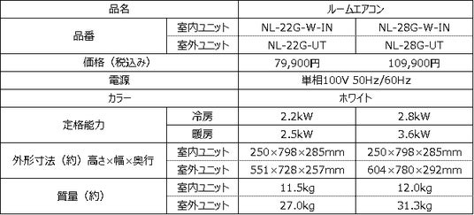 【商品名】エアコン 6畳用 (NL-22G-W)