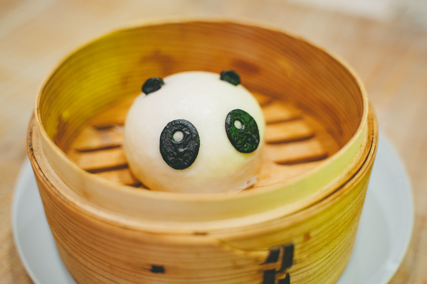 すでにお腹はいっぱいですが、最後は甘いもので締めたい!と半分こしたのが「パンダまん」。ビジュアルの可愛さに惹かれて思わず注文してしまいました。「かわいすぎて食べるのがかわいそう…」なんて言いながらも、出来立てのうちにいただきます。せいろで蒸された生地はふかふかで、火照った体と痺れた口の中に優しい餡の甘さがじんわりと染み渡ります・・・!