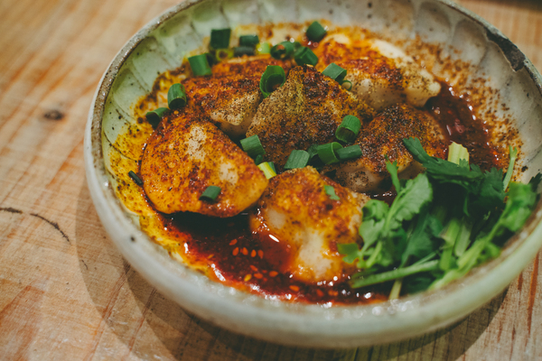 辛党の我々が「これは外せないでしょ!」と注文したのが水餃子。茹でたてアツアツの水餃子が真っ赤な辣油にんにくソースに浸って登場しました。レンゲですくって頬張ると…ひと噛みで口いっぱいに広がるジューシーな旨味と香ばしい辣油、さらに山椒の痺れがじわりと追いかけてきて、「これぞ四川!」と歓喜する美味しさでした。